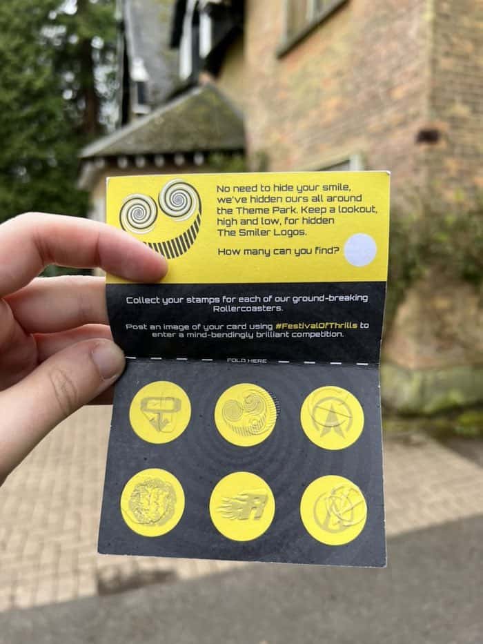 Once you have collected your six stamps you simply take a selfie with the stamped card, tag Alton Towers and use the #FestivalOfThrills to be in with a chance to win a free overnight hotel stay.