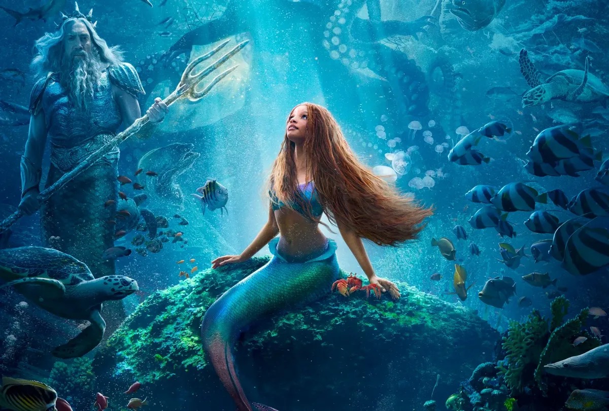 The live-action adaption of the beloved animated classic, “The Little Mermaid” —now over-scrutinized by everyone, especially bigots, in the lead-up to its release— hits high notes musically, but its murky visuals are a problem at times. The film goes under the sea, yes, and its score by Oscar winner Alan Menken and Tony winner Lin-Manuel Miranda is perfect. While it has choppy waters at times, leading lady Halle Bailey, who is on her way to stardom, helps keep this classic together.